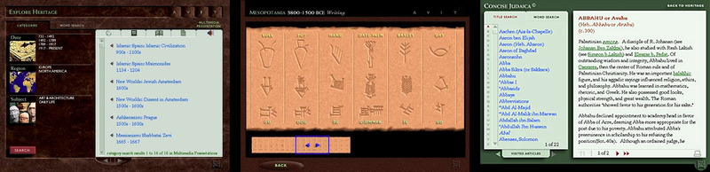 We considered using some of the popular formats of the day, but they were clunky, slow and produced huge output files. So we designed our own format. Leveraging some existing tools. and adding our own custom scripting language on top, we were able to develop a user-friendly system that WNET’s team could use, with minimal supervision and almost no daily interaction with the programmers on the other coast, to create more than 100 unique interactive sequences for the product. The resulting “Heritage Engine” became a key Quicksilver technology (to which we owned the rights, as part of our development agreement with WNET).