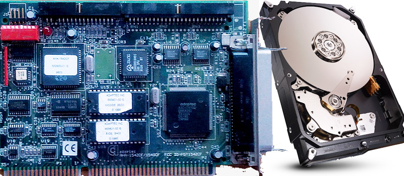 We got very good at making the most of devices like the ones shown here, such as this Adaptec SCSI board and old-school 5.25” Seagate hard drive – so good that we were asked to develop the complete code for several SCSI “host adapter” boards for IBM PC hard drives by Western Digital and another local company, Rancho Technology, which had the distinction of having built the world’s fastest hard disk controller, clocking in at a whopping 1.2 megabytes per second.